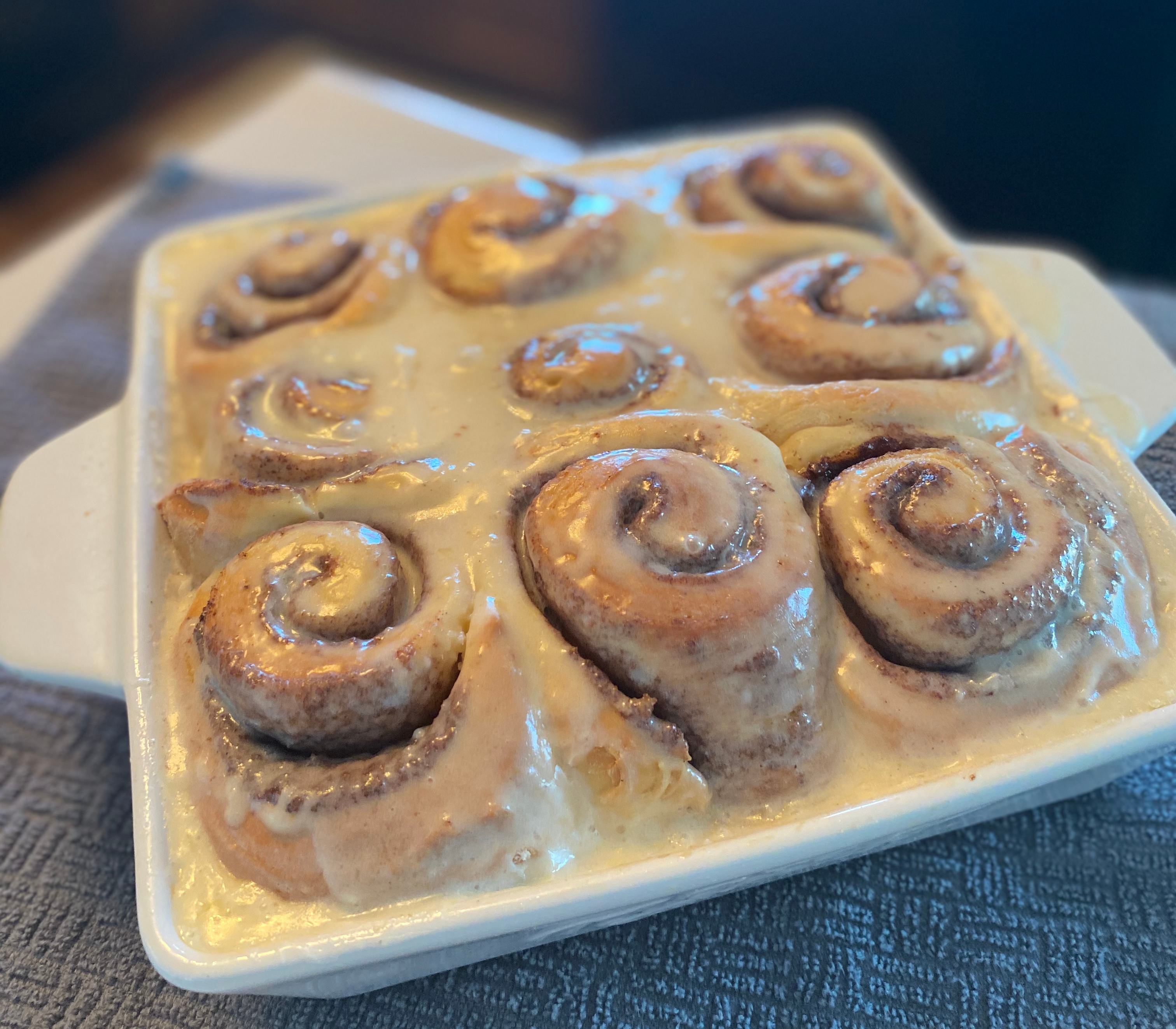 - When rolls are done, spread icing on top and serve! Enjoy!