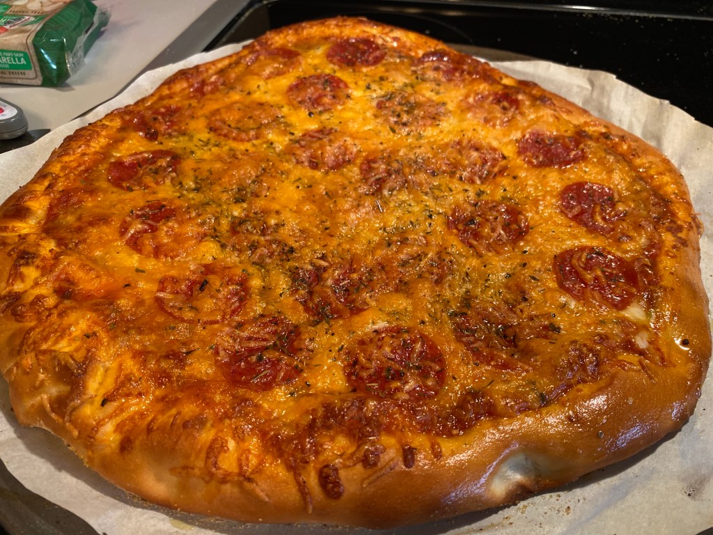 Okay! So it has been a hot minute since I posted anything and tonight I decided to make homemade pizza. This recipe is ideal for a family of more than just 2 people but at least we have leftovers! I highly recommend this to any pizza lovers! I almost made chef boyardee but decided to go all in with this! Also, I made a sauceless tomato mozzarella pizza and a super cheesy pepperoni pizza. Enjoy!